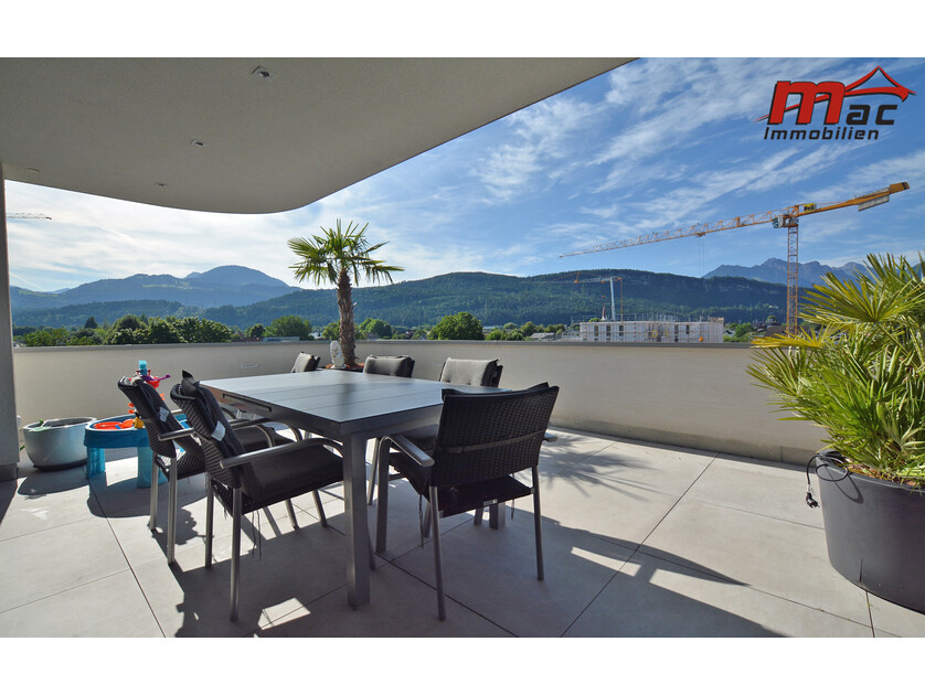 Das Herzstück im Wohnbereich bezieht sich auf die exklusive ca. 105 m² große Penthousewohnung mit traumhaften Rundumblick mit ungetrübter Fernsicht auf die Bergwelt.