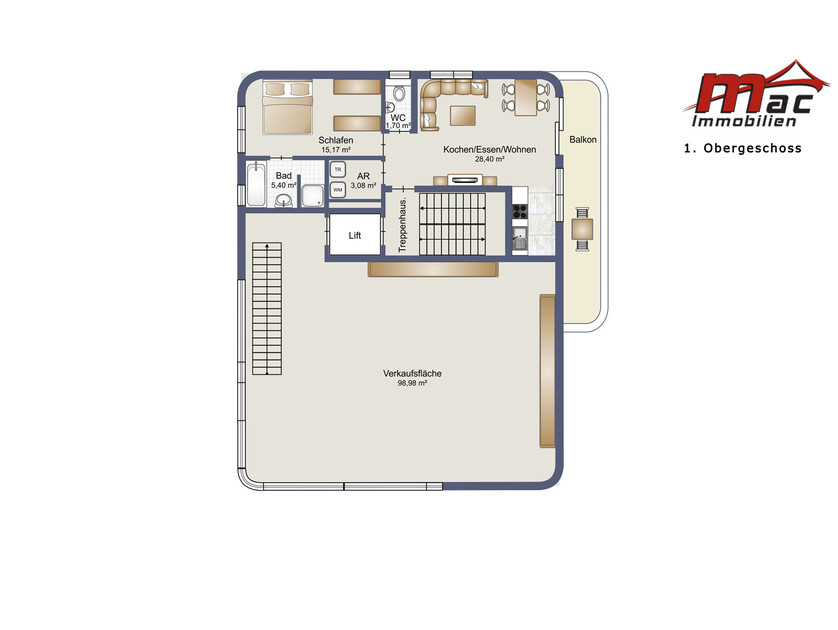 216,48 m² auf zwei Etagen – mit Lift, Treppenhaus, Gäste WC |