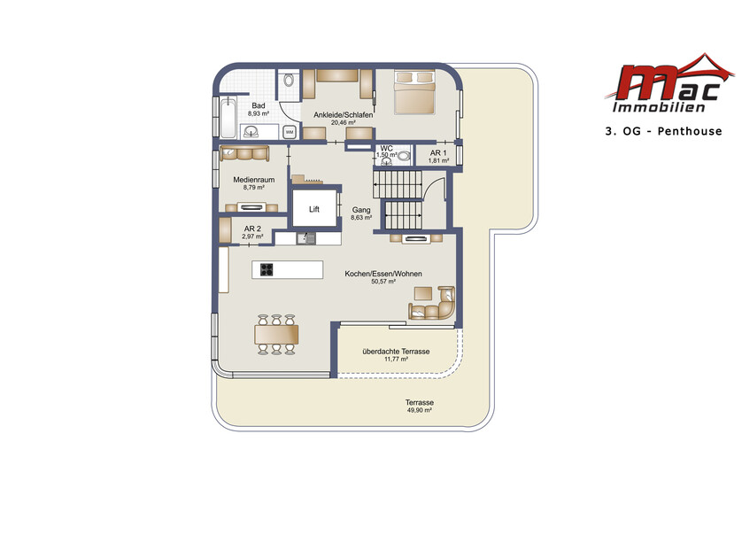 3. OG: 3 Zi-Penthouse mit 104,56 m² zzgl. Terrasse m. 61,67 m² |