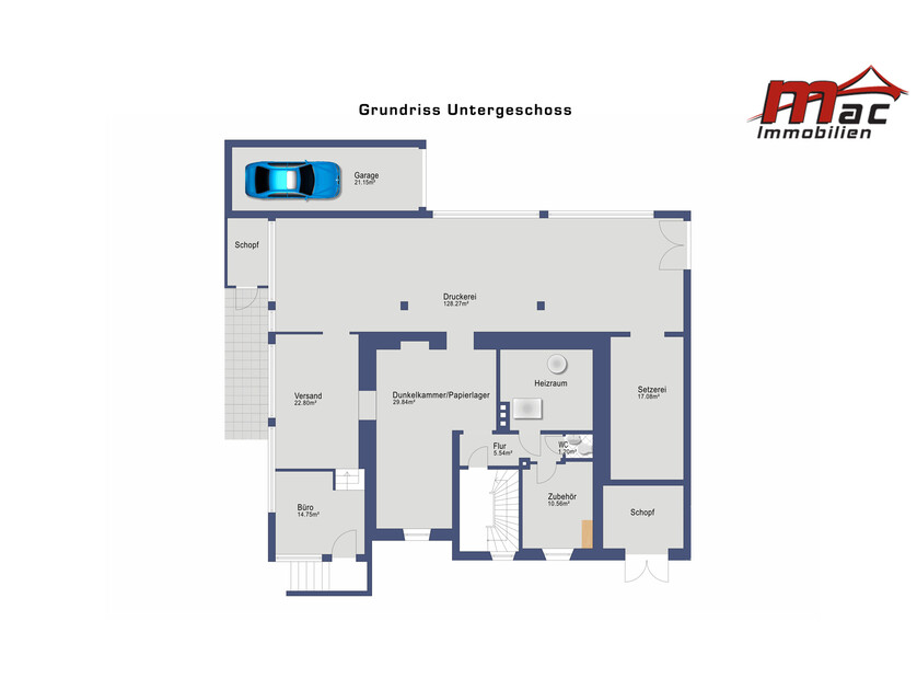 Weiters bietet das Objekt eine Gewerbefläche mit Büro, Lager und Produktionsfläche von 246 m² an, welche bisher als Druckerei verwendet wurde.