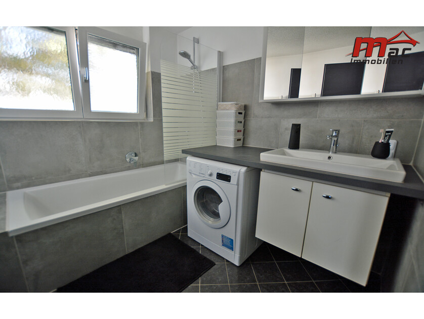 BJ 2020, mit Fenster, Waschtisch m. Spiegelschrank, Badewanne m. Duschmöglichkeit, Handtuchwärmer, WM-Anschluss & Fußbodenheizung |