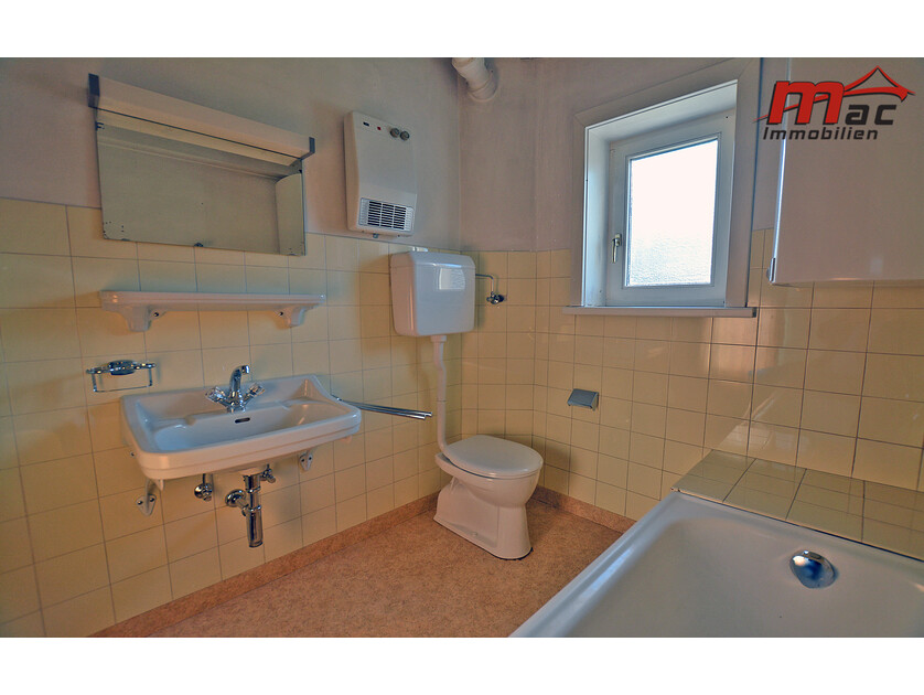Das Badezimmer ist mit einem Fenster, einer Badewanne, einem 120-Liter-Boiler für die Warmwasseraufbereitung sowie einem WC ausgestattet.