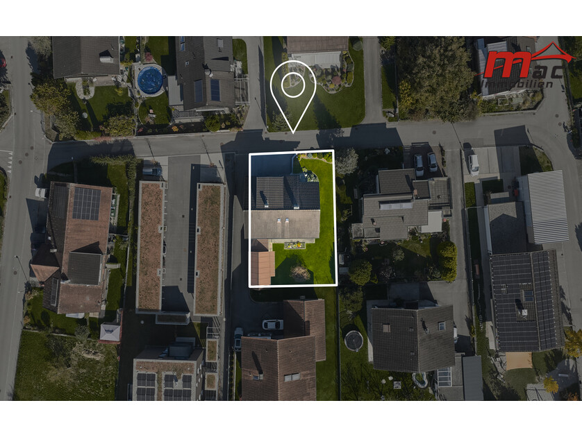 Der Balkon mit 7 m² sowie ein zweigeschossiger Schopf mit ca. 10 m² ergänzen das großzügige Raumangebot.