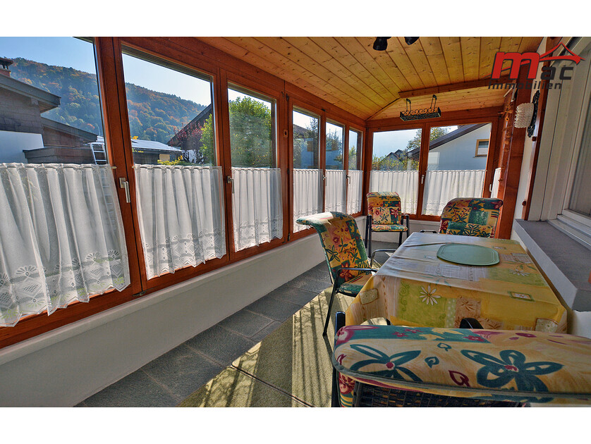 Ein südöstlich ausgerichteter Wintergarten mit 9 m² schafft direkten Zugang zum liebevoll gestalteten Garten, der sich in einem hervorragenden Zustand befindet.