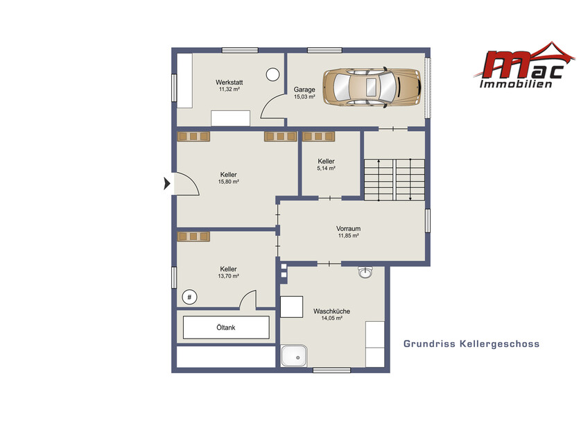 Der gepflegte Keller mit einer Fläche von ca. 60 m² verfügt über einen eigenen Ausgang in den Garten sowie über eine zusätzliche Dusche in der Waschküche.