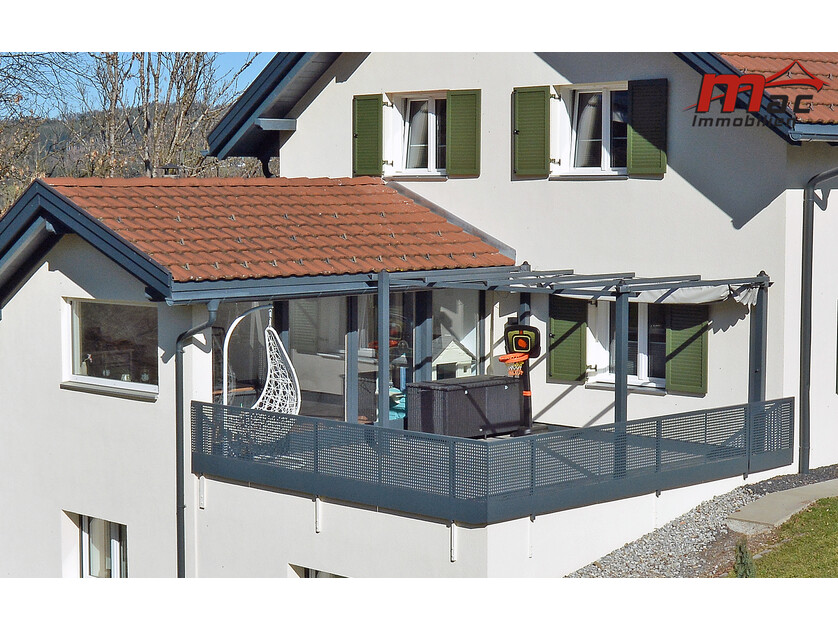 Kunststofffenster mit Dreifachverglasung gewährleisten eine sehr gute Wärmedämmung. Aluminium-Fensterläden, elektrische Rollläden im Wohnzimmer des Untergeschosses sowie Storen sorgen für optimalen Sicht- und Sonnenschutz.