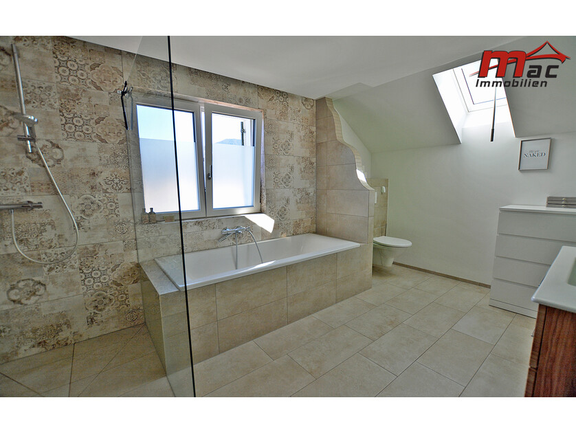 In allen drei Etagen befinden sich hochwertig ausgestattete, moderne Badezimmer. Insgesamt stehen drei WCs zur Verfügung, darunter ein separates Gäste-WC.