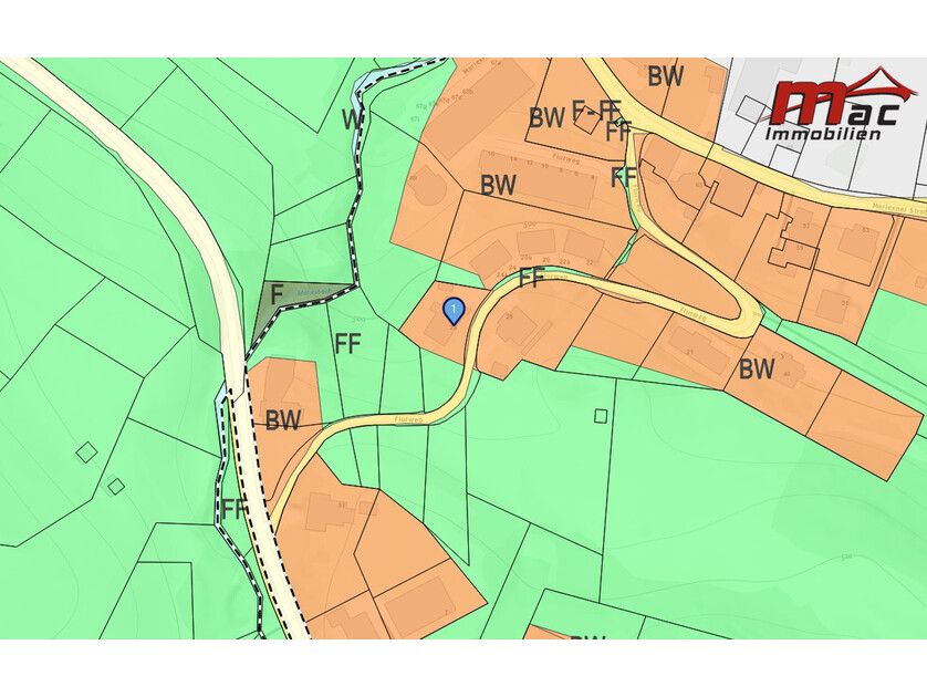 769 m² lt. GB, Bauwohngebiet (BW) & Freihaltegebiet (FF) gewidmet |