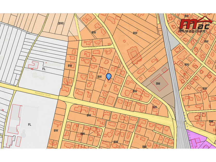 Das beinahe quadratische Baugrundstück ist als Bauwohngebiet (BW) gewidmet und ist voll erschlossen.
