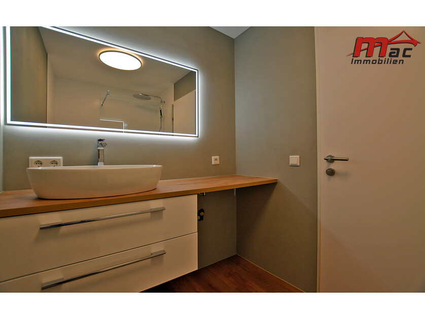BJ 2024, moderner Waschtisch mit Verbau, geräumige - bodenbündige Dusche, WM-Anschluss |